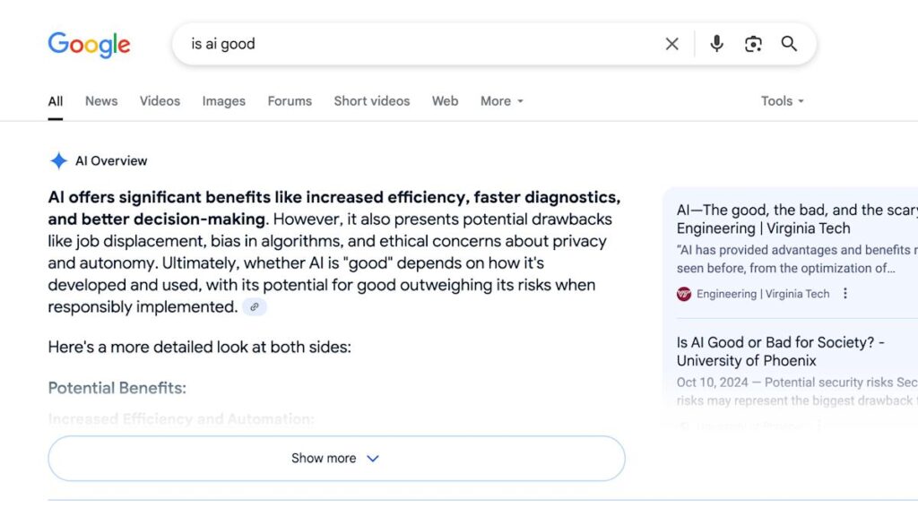 Google’s AI Overviews do not save me time. For one, I work for a tech blog and am therefore professionally curious as to whether or not the generated answers are correct, so I spend a few ticks figuring that out. (Answer: Sometimes, but not always!) Then things get existential as I contemplate how long a […]